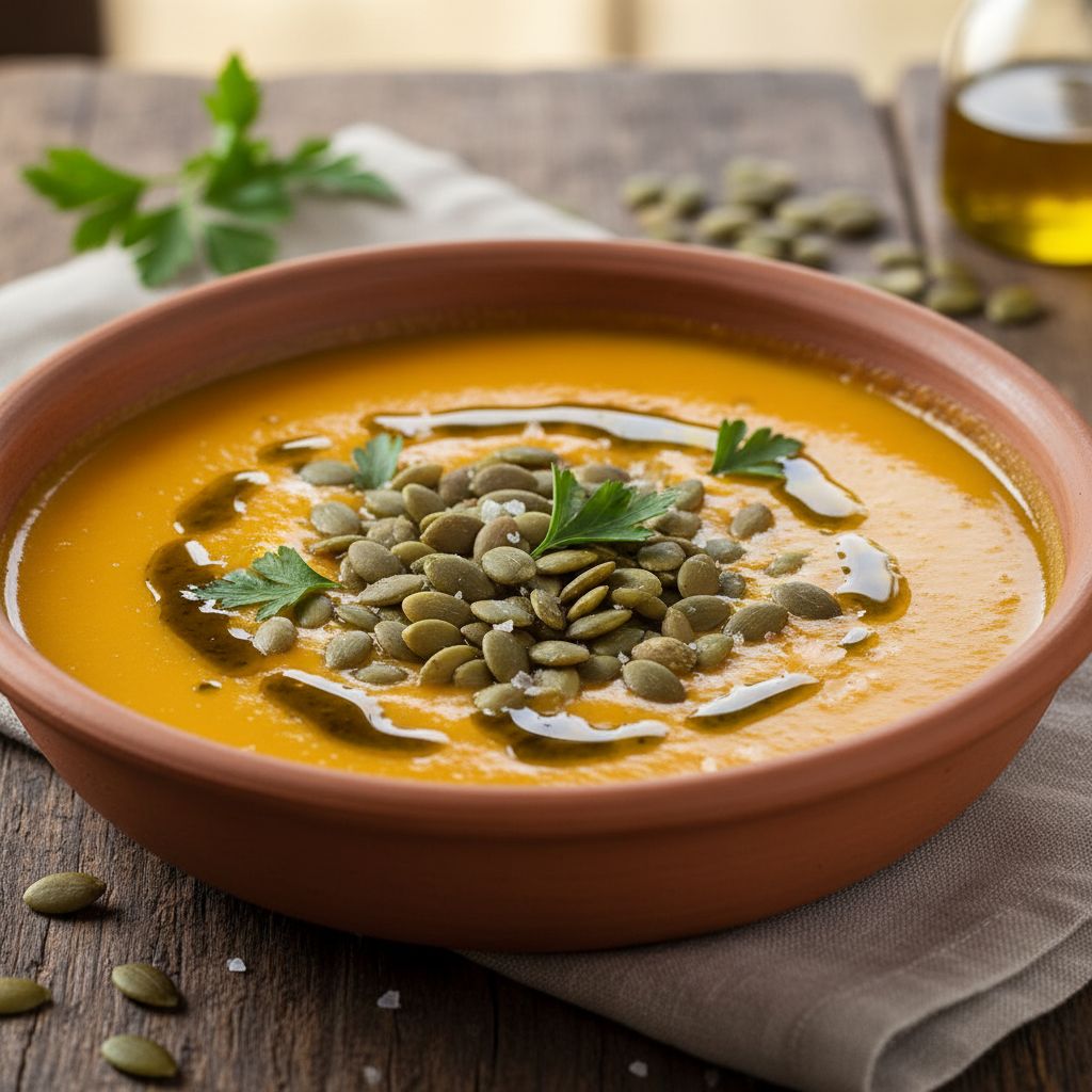 Kürbiscremesuppe mit Kernen und Öl Menge